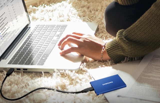 最后给大家推荐一款三星的移动固态硬盘,这款三星T7移动固态硬盘容量为1TB,基本可以满足用户的日常需求。同时相比于普通的移动硬盘,移动固态硬盘拥有更高的传输速度,这款三星T7移动固态硬盘的读取速度高达1050MB/s,而写入速度为1000MB/s,让数据传输更为高效。同时体积非常小巧,重量方面仅为58克,大小如同一张信用卡大小,非常便于日常的携带。