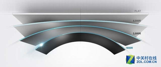 曲面显示器以屏幕中间垂直90度的直线为轴,左右两侧屏幕向中间合拢。由此呈现出弯曲的屏幕效果。而屏幕的弯曲程度我们用曲率(R)表示,曲率是针对曲线上某个点的切线方向角对弧长的转动率,也就是弯曲屏幕的半径数值。