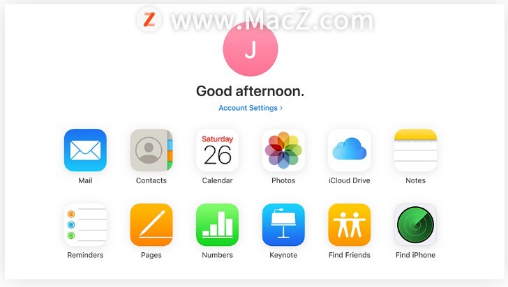 首先,请先点此登入iCloud 网页版,并点选画面中间的「帐号设定」(或图中的「Account Setting」)