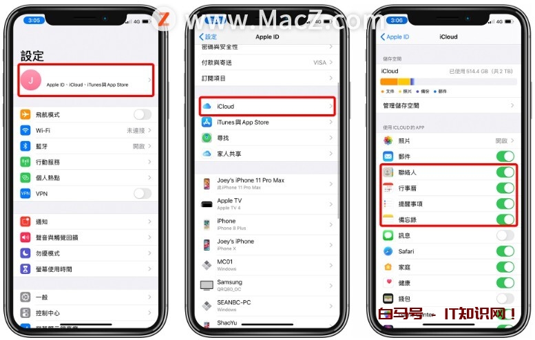 iCloud 恢复联络人、行事历比较特殊