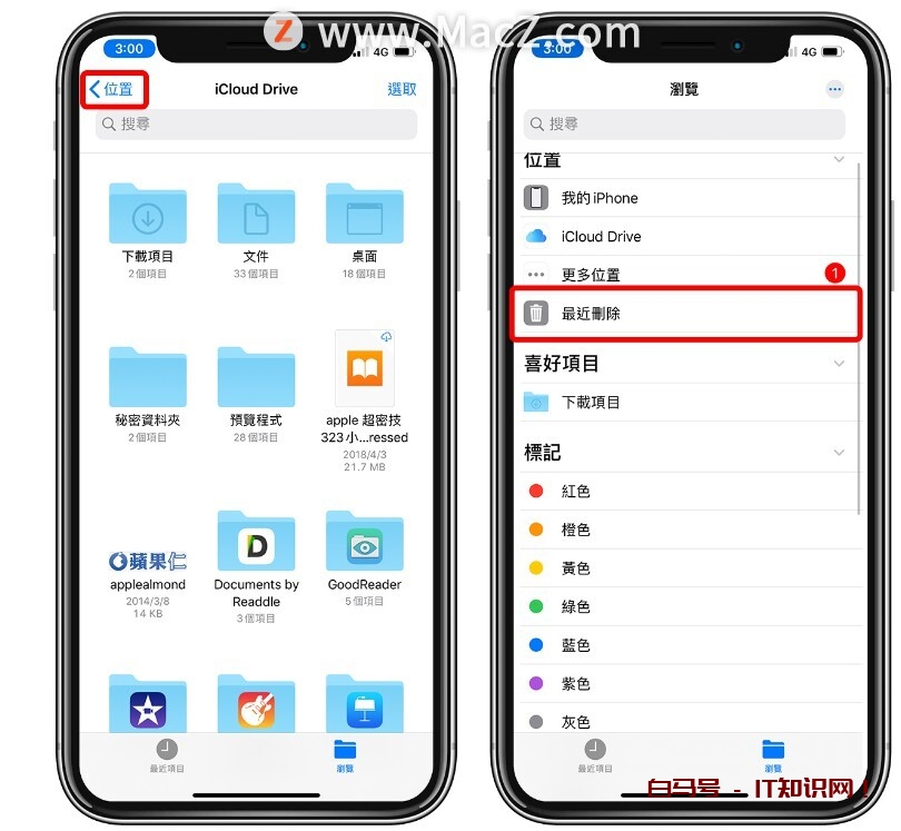 在档案App 中,于「浏览」中找到「最近删除」: