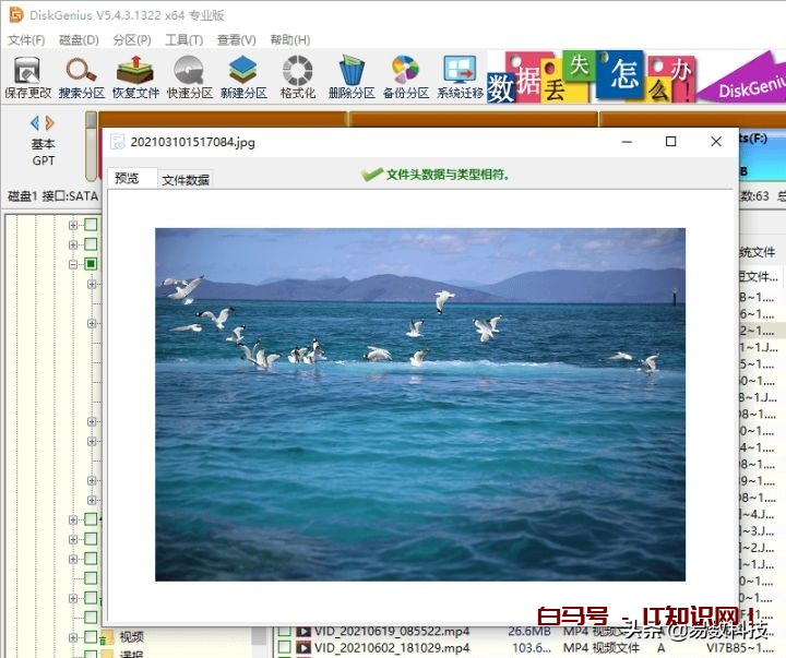 遇到无法预览的情况,首先检查使用的软件版本是否支持预览,例如,DiskGenius单文件版本不提供文件预览功能,需要在官网下载正常版本方可预览文件。此外,无法预览文件的情况还可能是该文件已经损坏或是该文件类型不支持预览。软件不支持预览的文件类型,预览窗口提供了文件的二进制与ASCII码内容预览,说明该文件里面有数据,至于文件是否受损了,应以实际恢复结果为准。