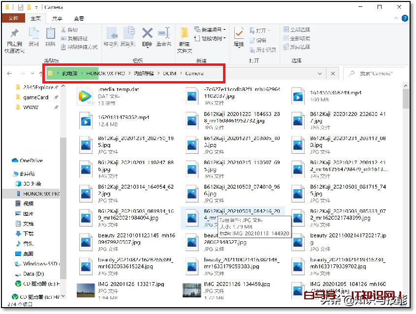 我们在电脑上打开【此电脑】找到里边的就是用我们手机型号命名的这个文件夹,打开它,然后再打开内部存储空间找到里边的DCIM文件夹,接着打开camera它里面存储的就是我们手机的文件,直接全部复制粘贴到我们的电脑上即可。