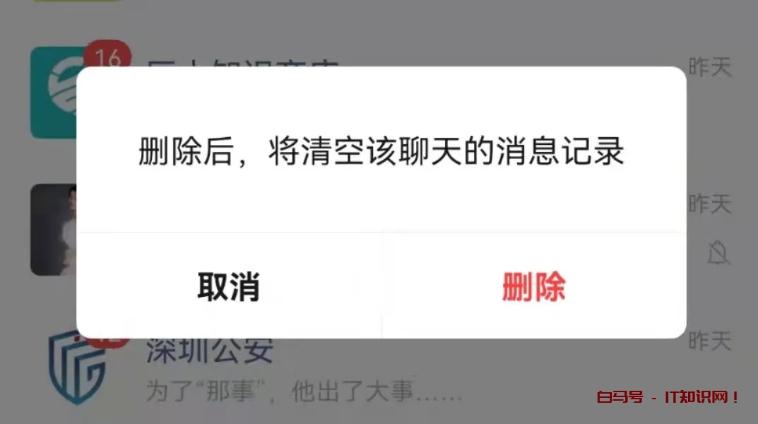 选择你想删除聊天内容的好友,长按对话框,点击“删除该聊天”,就会清空与他之间的消息记录。但这种删除方法所删除的聊天记录,是可以通过第三方数据恢复的。只是表面上的删除,如果有心人想要找回来,也是能够恢复回来。