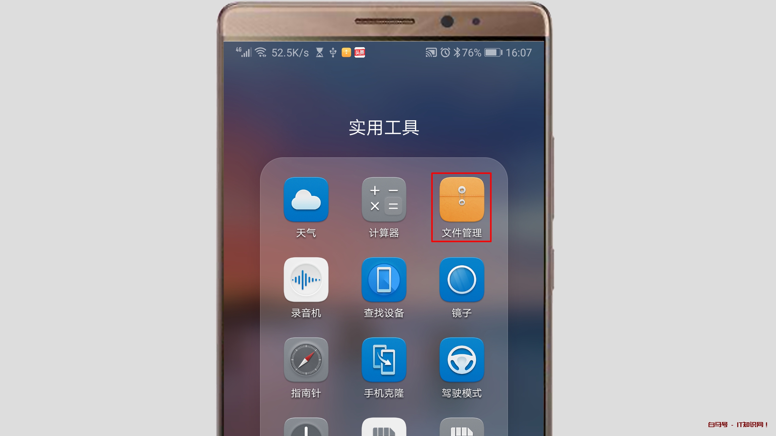 2、确认手机正确连接U盘后,通过桌面点击“文件管理”App。