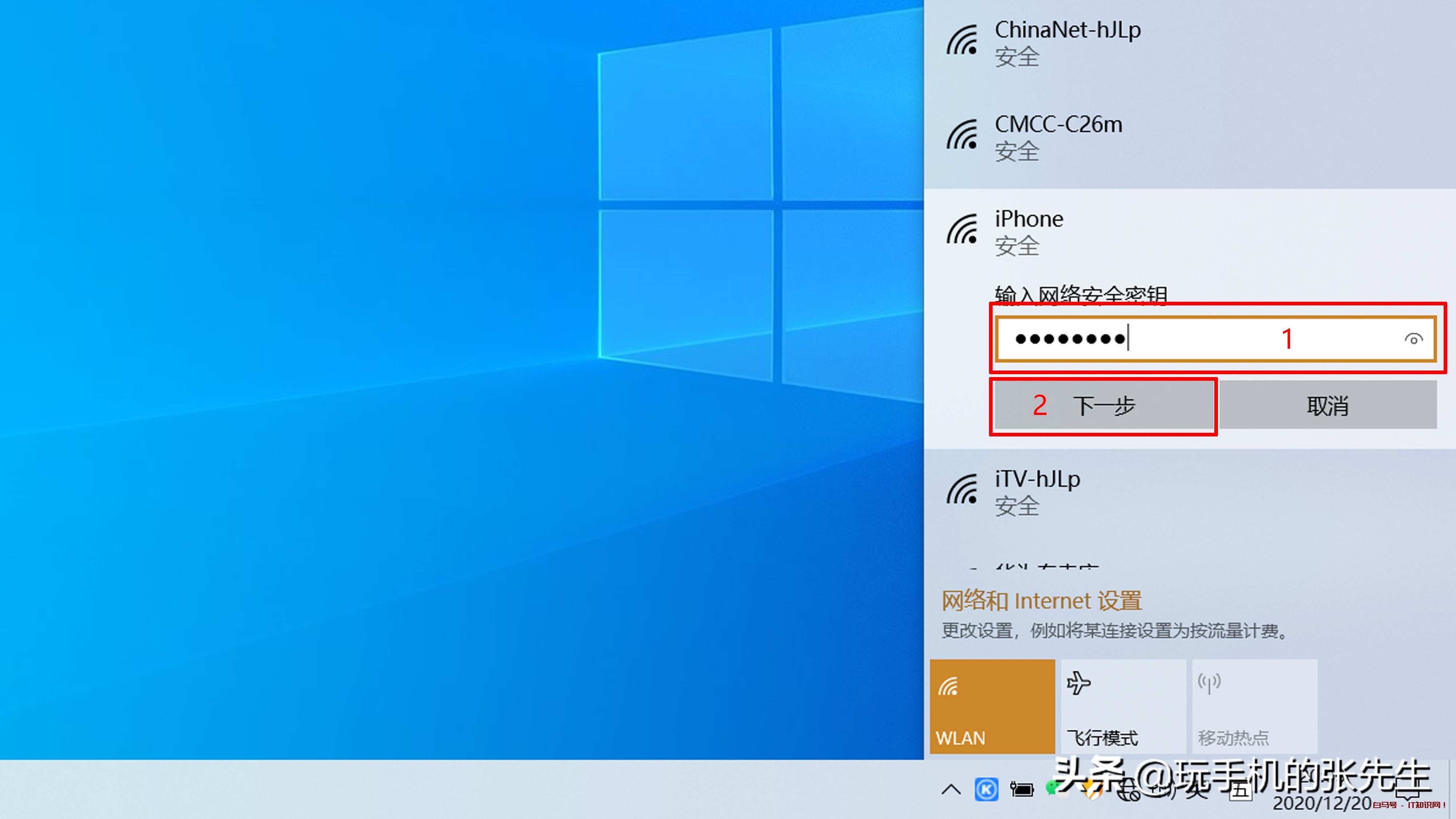 1、打开苹果手机的热点功能,并为热点设置无线局域网密码。