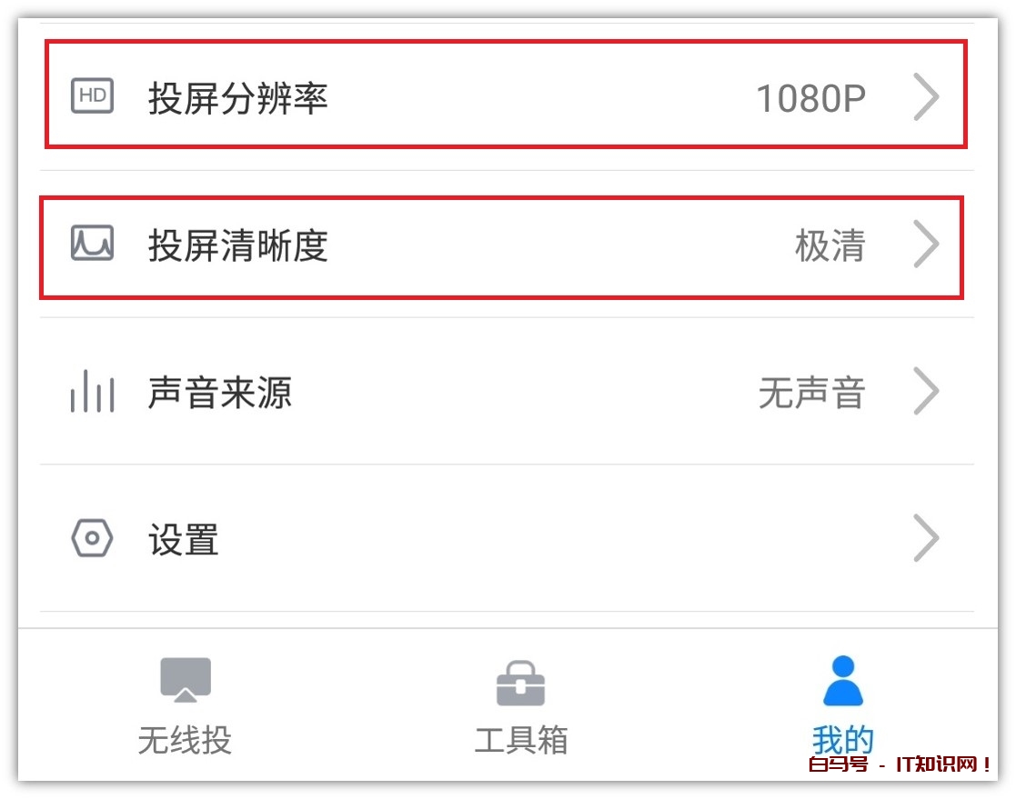 如果你第一次投屏觉得画质不清晰,可以在手机上设置一下投屏分辨率和投屏清晰度,都调成最高。