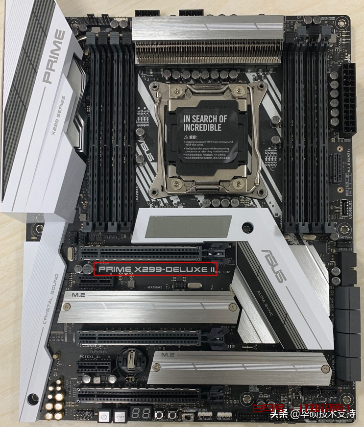 1. 您可以查看印在主板上的型号名称。 (下图以PRIME X299-DELUXE II为例)
