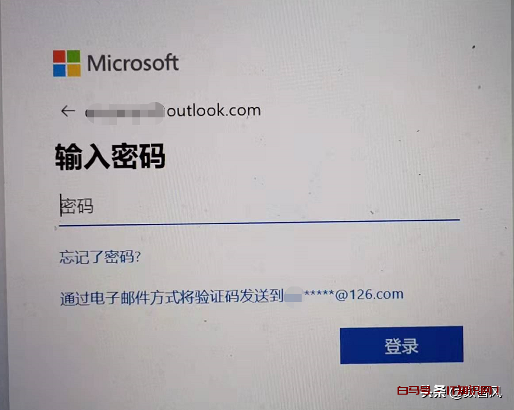 ①、在windows密码登录界面,点击忘记密码,系统会自动跳转到忘记密码页面。在这里你只需要点击“通过电子邮件方式将验证码发送到**邮箱即可。