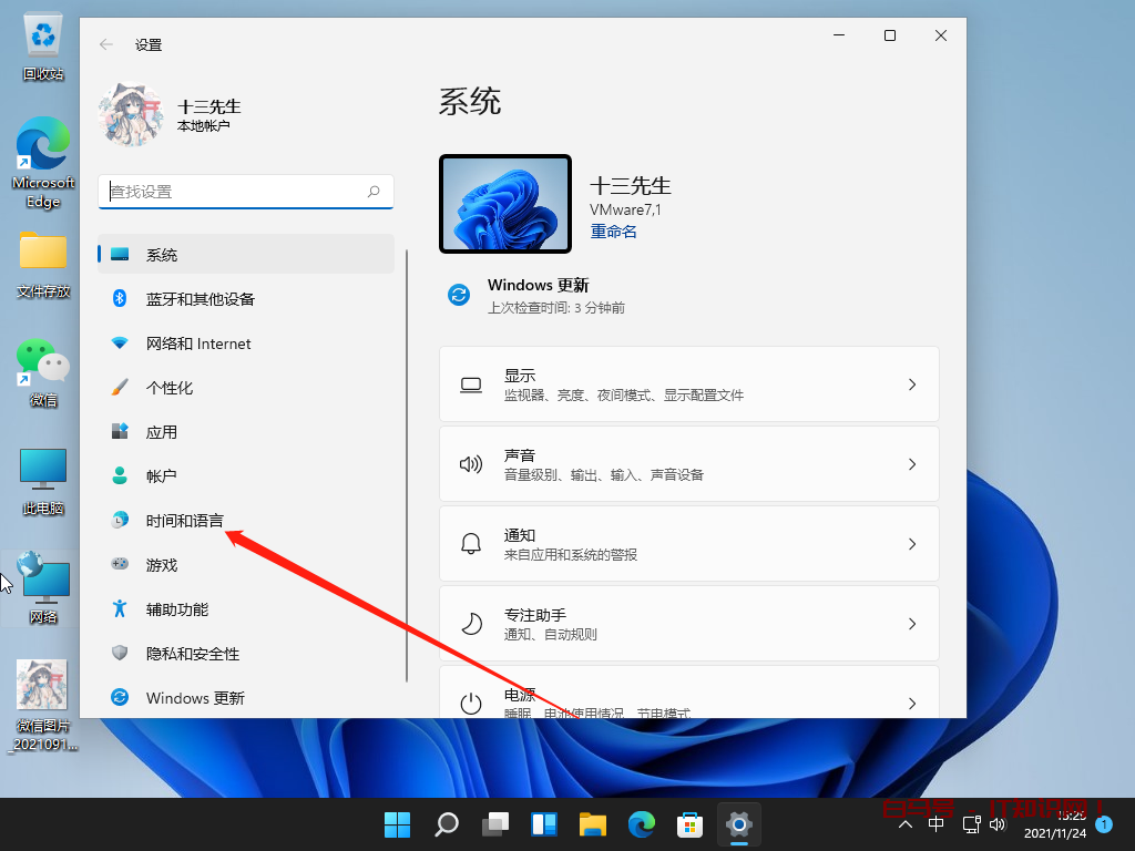 2、在打开的设置中,找到我们的时间与语言选项,并且点击进入。
