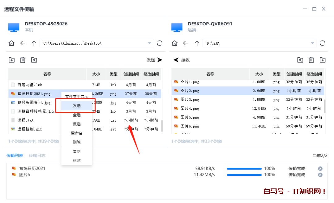 4.在家做好的文档,也可以传输到公司电脑上,在左侧主控端找到做好的文件,右键“发送”,公司电脑就能秒收文档!