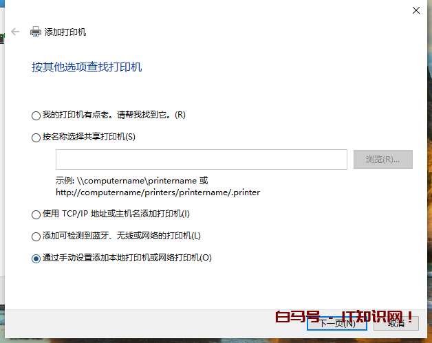 5、然后这个界面我们勾选最下方的“通过手动设置添加本地打印机或网络打印机。