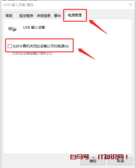 电源管理,去掉计算机关闭此设备以节约电源打勾;