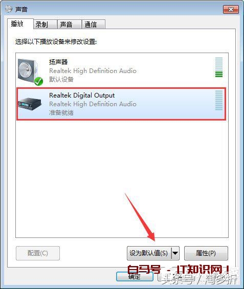 4、点击下面的音频管理器,“设为默认值”选项,然后点击确定就设定完成了。