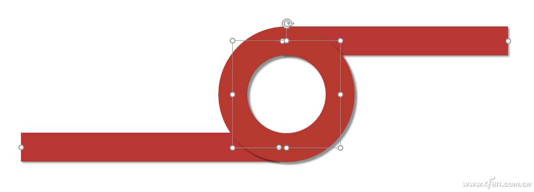 接下来随意绘制一个矩形,使其高度与圆形将要开的缺口大小相近,并将两个图形叠加到一起。复选圆形和矩形(先选圆形后选矩形),切换到“格式”选项卡,点击工具栏上的“合并形状→剪除”,即可得到一个凹圆形。