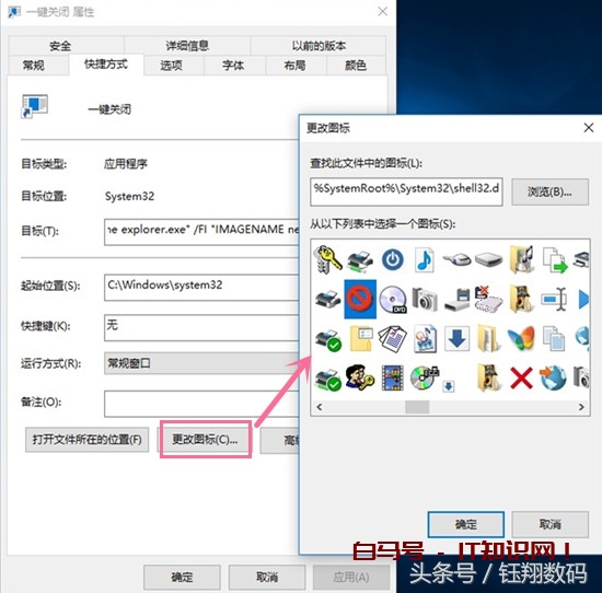 - 右击图标—属性—更改图标,我们选择一个自己合眼的图标。