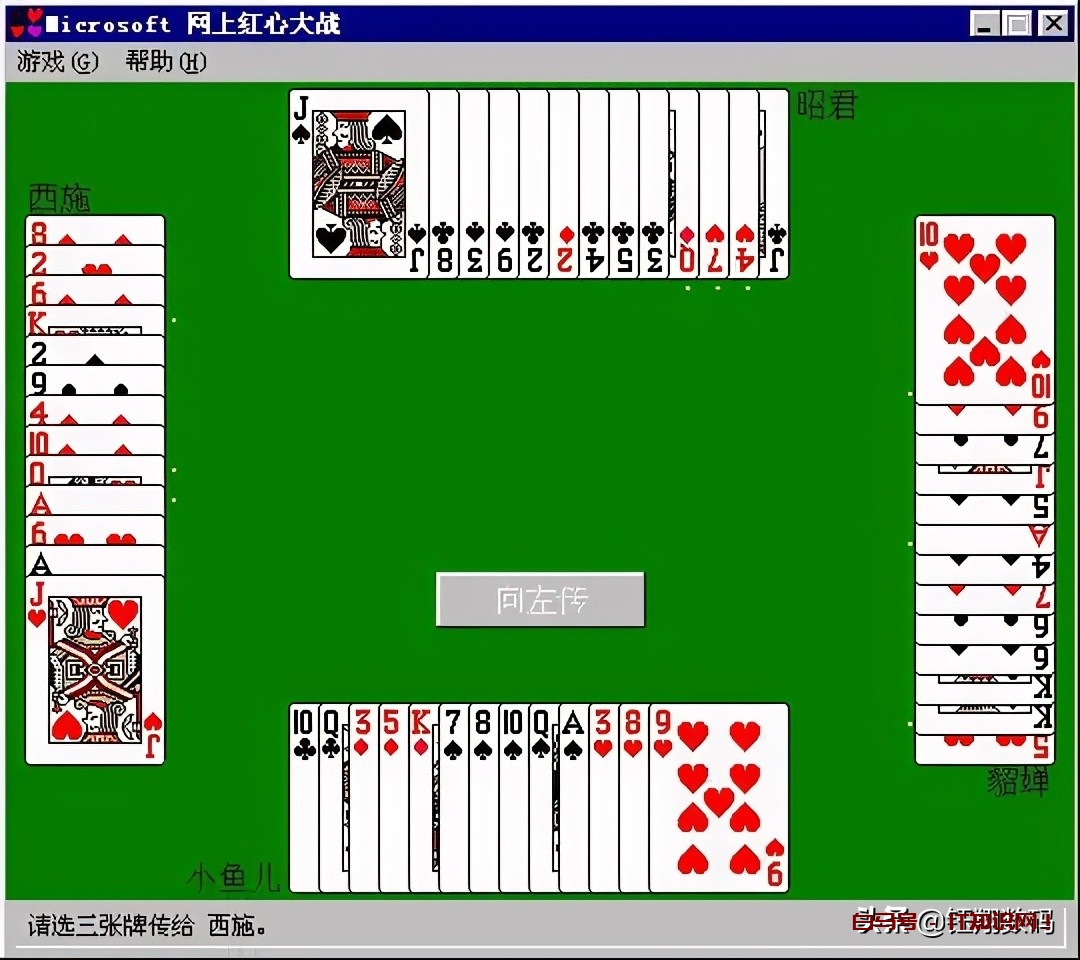 微软于1992年在Windows for Workgroups上首次推出了“红心大战”,这是首款支持局域网联网的自带游戏。不过到了XP系统时联网功能就被取消了,只能单机玩了。在Windows 10中被删除,意味着红心大战不再作为Windows10系统的自带游戏。