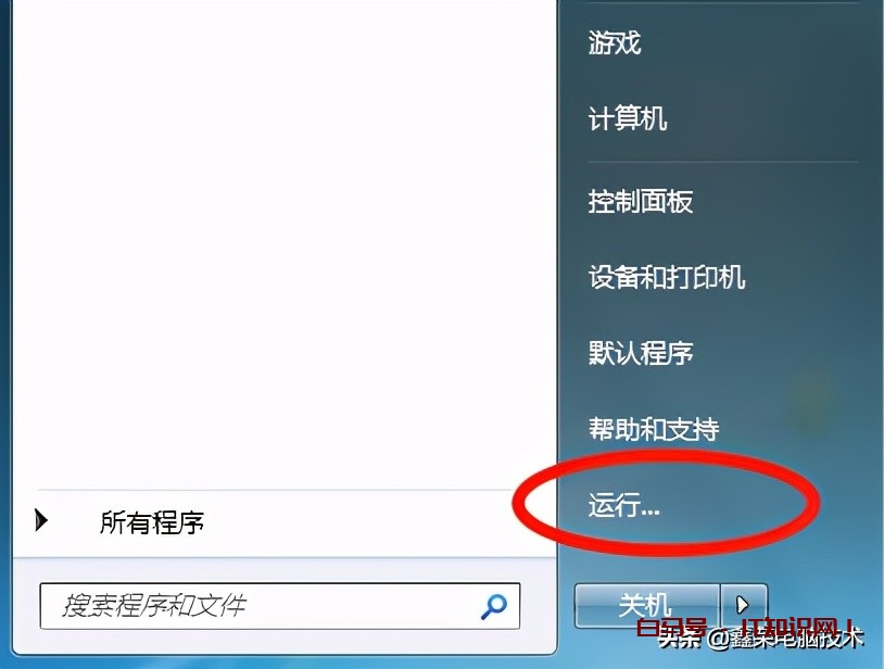1、鼠标点击桌面左下角开始菜单,找到运行并打开,或者使用Win+R的快捷键组合来打开运行;