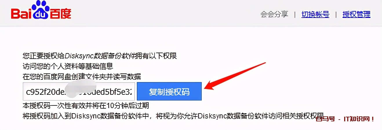点击获取授权码,一键复制,回到FileYee,粘贴至授权码输入框内,点击进行授权,完成后会弹框提示,授权完成,并获取百度用户名。