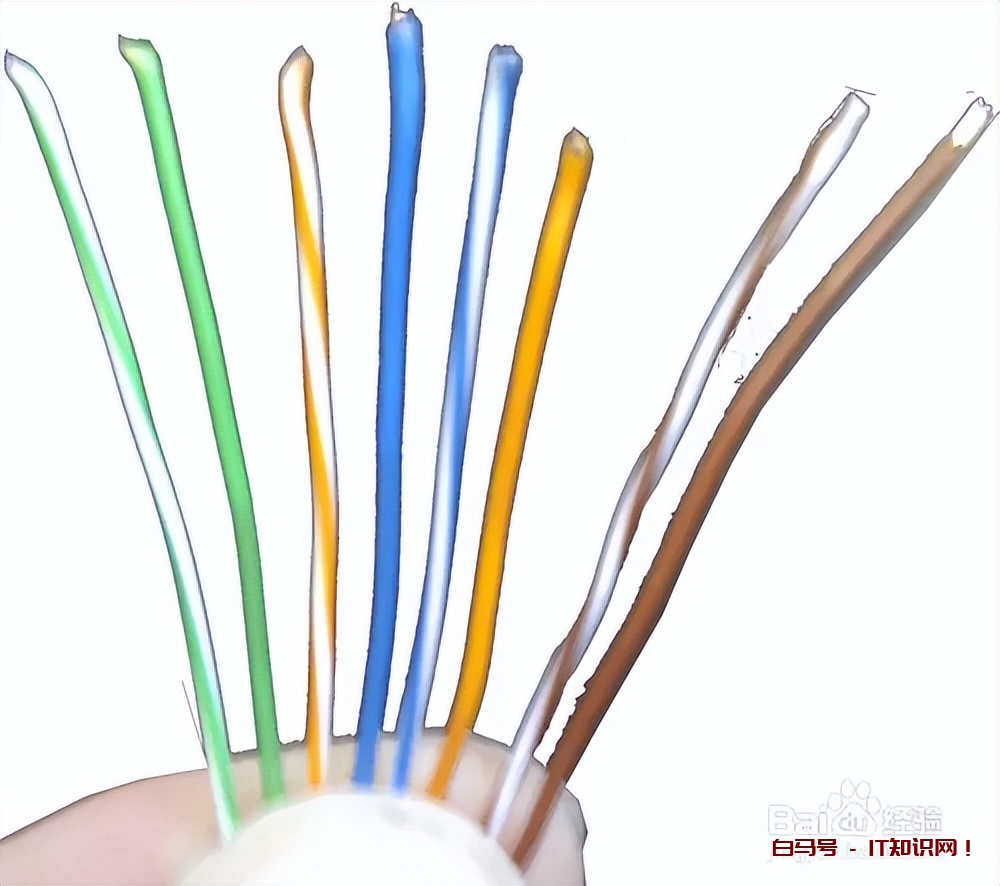 568B:顺序为白橙、橙、白绿、蓝、白蓝、绿、白棕、棕。(最常用)