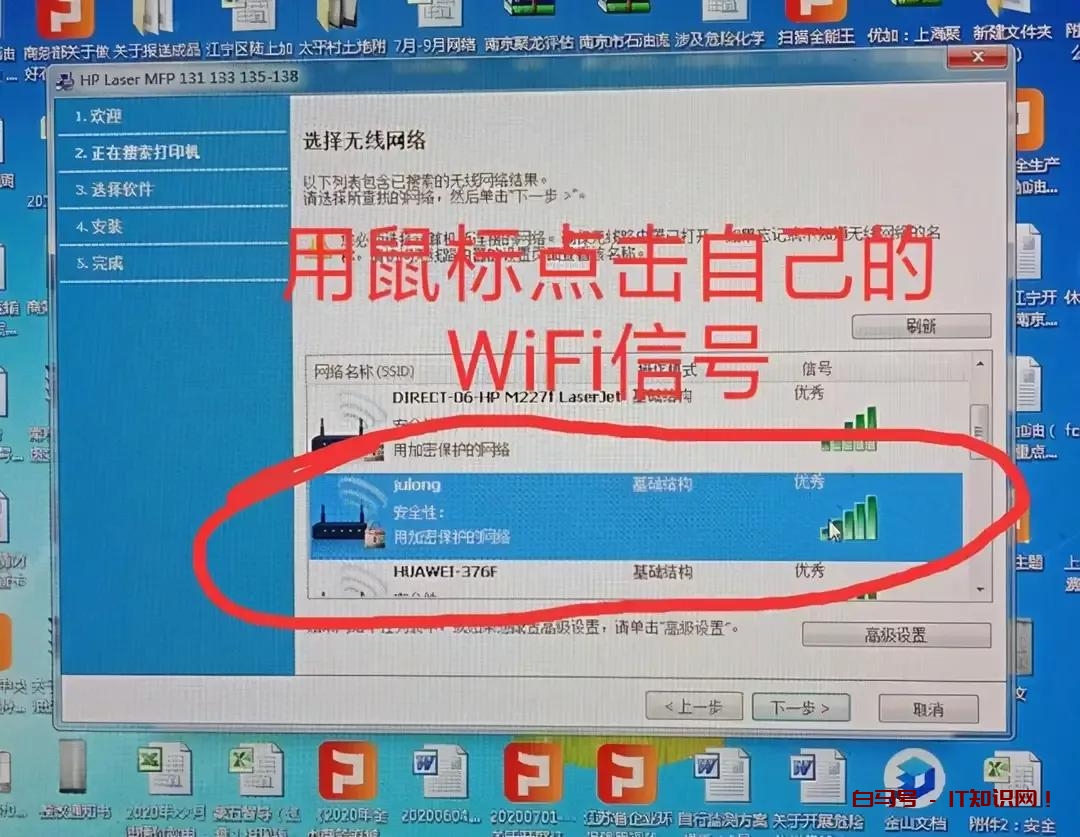 4.用鼠标点选,自己家里的WiFi信号。再点下一步。