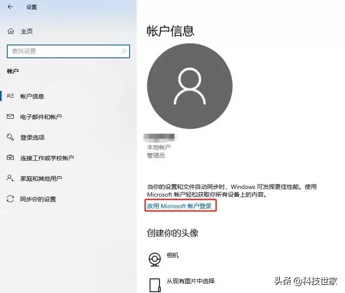 可以在设置 – 账户 – 账户信息中注册 Microsoft 账户,并登录。