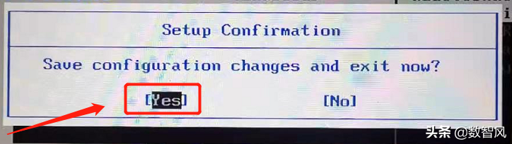 ④、设置完成后,只需按F10,系统弹出保存并重启的菜单,点击yes即可。