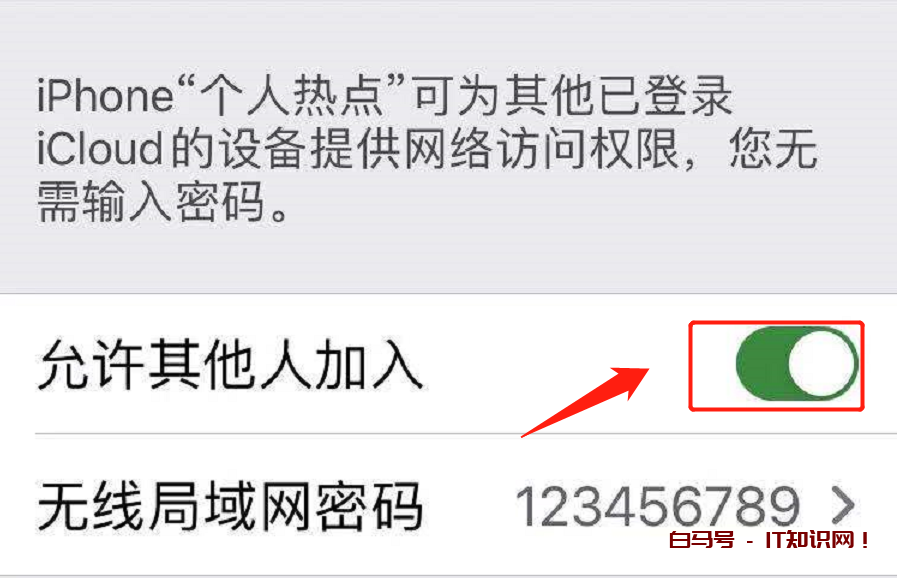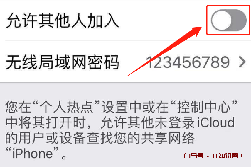 另外,如果手机连接了WiFi网络,是无法分享热点的,只能通过用户手机卡的数据才可以分享热点。当手机卡出现欠费或手动关闭热点的时候,热点就会失效。如果用户想要关闭热点,将热点功能中的“允许其他人加入”的开关关闭掉即可。