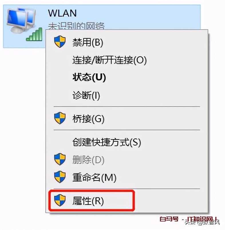 ③、在更改适配器选项页面中,右键点击故障网卡。在弹出的菜单中,点击“属性”进入。