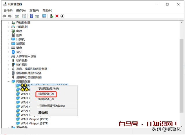 ③、右键点击故障网卡,在弹出的菜单中,点击“禁用设备”菜单。