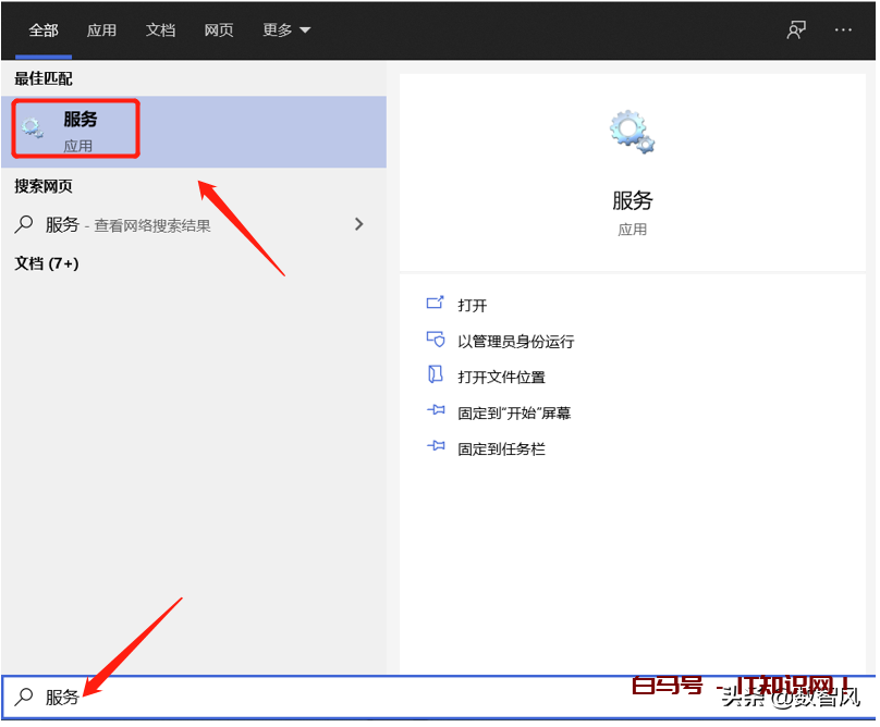 ①、点击win任务栏中的搜索图标,然后输入“服务”。系统会自动匹配“服务”应用,敲回车启动应用。