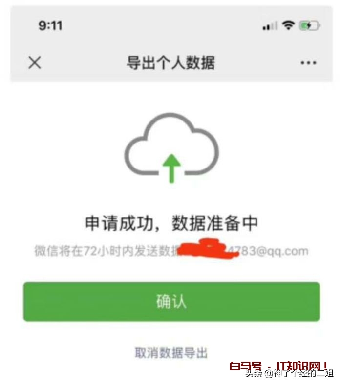 点击下一步提交申请成功后,数据即可以开始进行备份。微信会在72小时内将你的账号数据发送至指定邮箱。