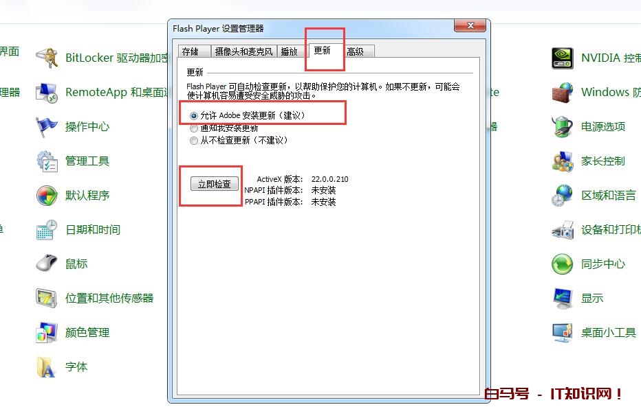 07点击“更新”,点击“adobe允许更新建议”,点击“检查”即可测试电脑flash版本是否失效。