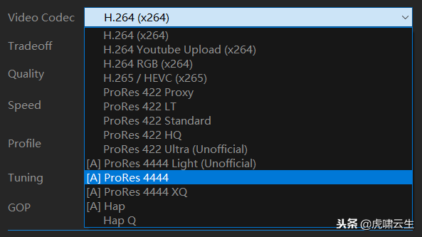 在主界面可以看到支持的编码方式,同时,可以看到这款脚本还支持Apple ProRes编码以及Apple ProRes 422代理。对于影视线性工作流,这种编码具有重要意义。