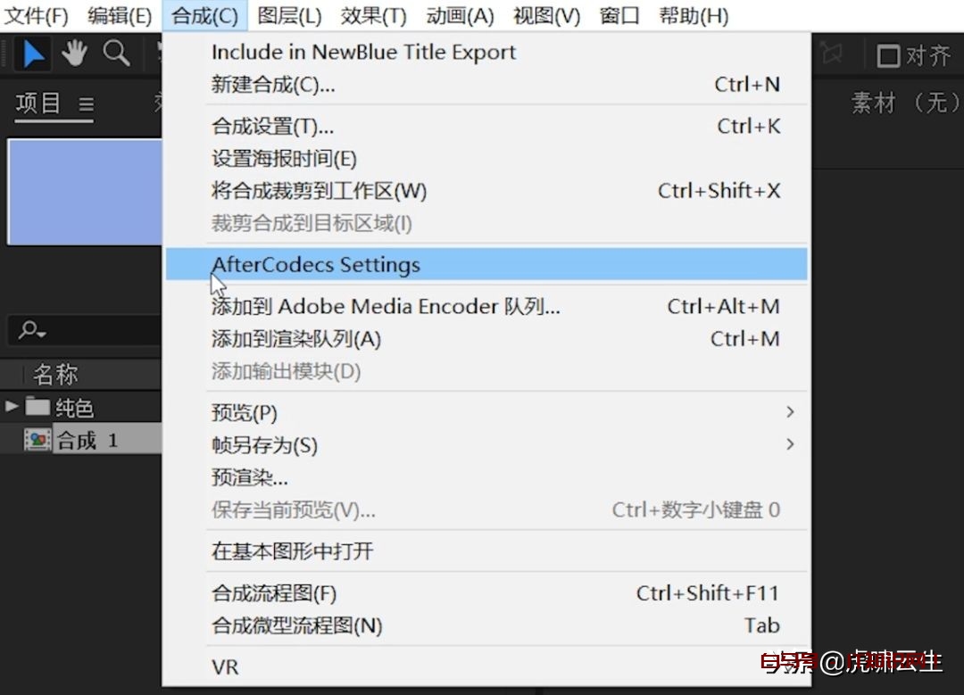 安装好后,在合成菜单里可以看到设置选项。