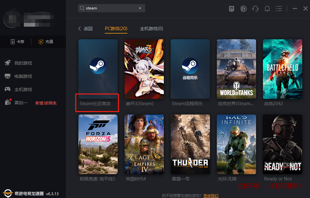 steam的服务器在国外,特别是最近,很难连接得上,访问响应非常慢。对此,用户可以打开奇游加速工具来优化网络,试用:搜索steam社区,点击加速即可解决问题,对游戏加速还可以做到联机超低延迟。