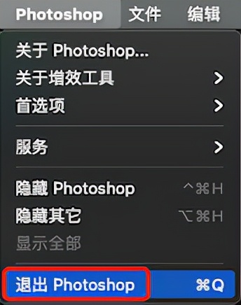 首先需要退出 Photoshop。对于 Windows 系统,在菜单栏的【文件】菜单中选择【退出】选项。对于 Mac 系统,在菜单栏的【Photoshop】菜单中选择【退出Photoshop】选项。