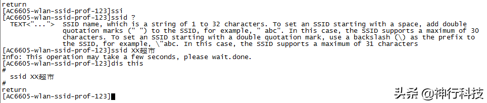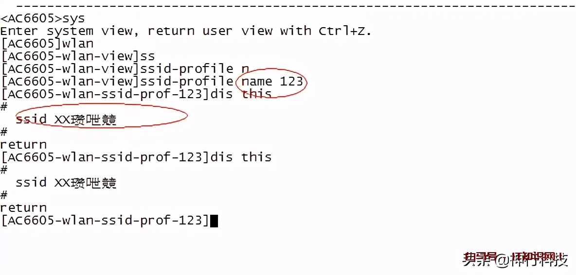 所以提醒大家,这边先按正常流程去配置SSID模板,引用到VAP模板,搜索到乱码的wifi名称后 ,再CRT进入SIID模板,改成中文SSID
