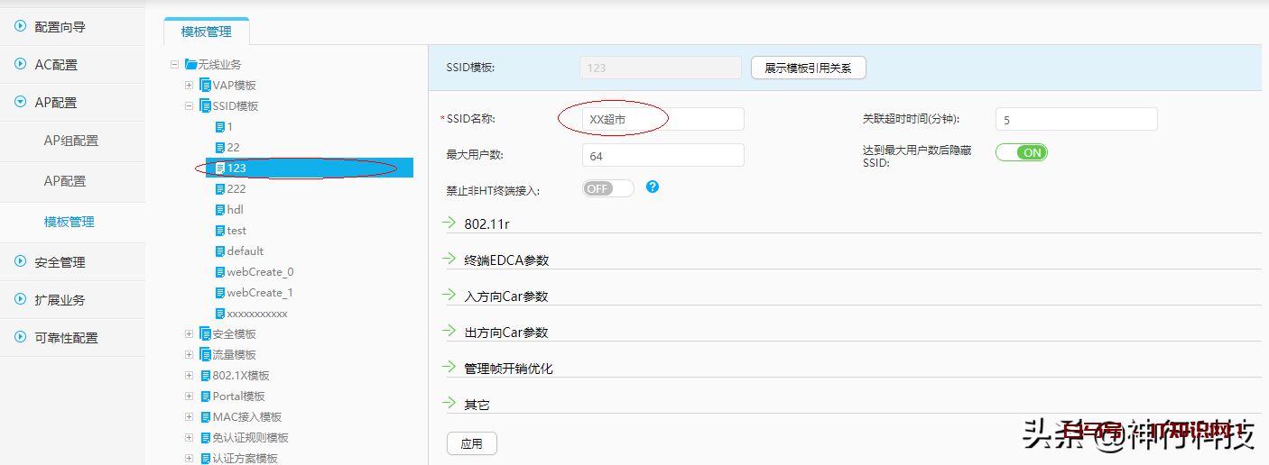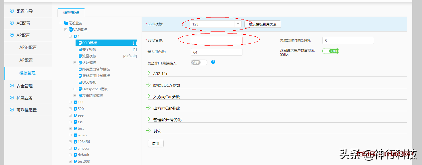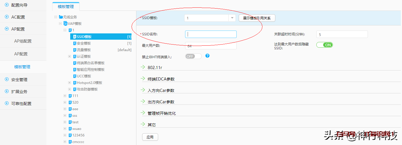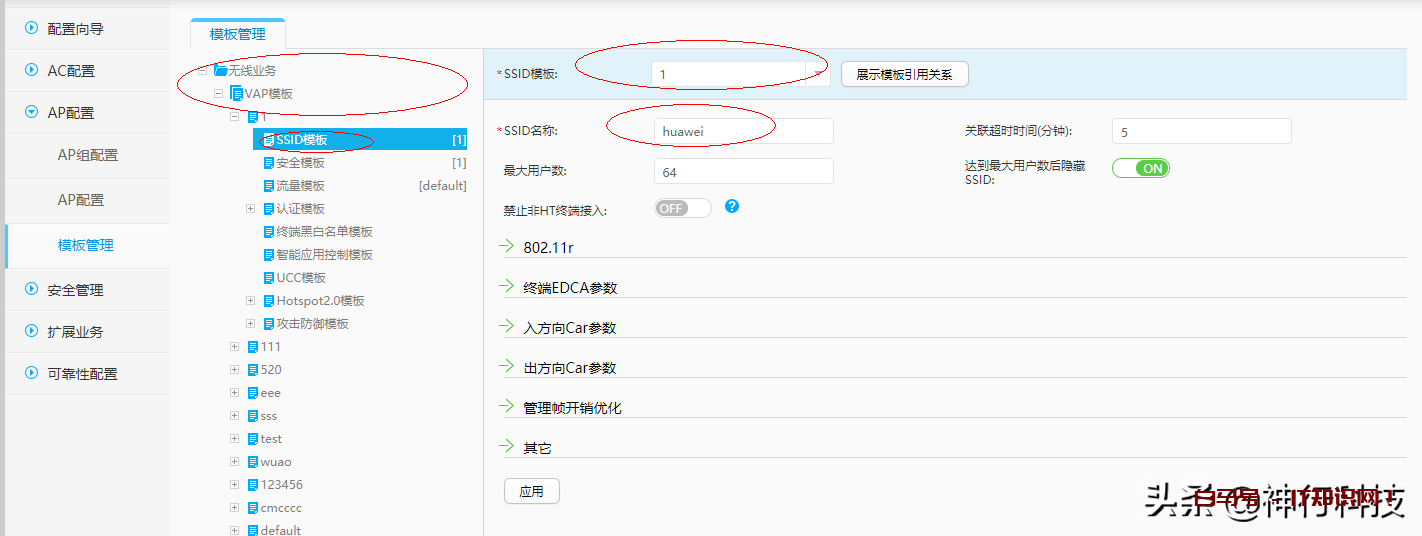 (这里因为改了上诉操作,所以用了一个VAP下其他在用SSID模板1替代)
