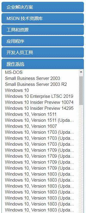 第二步,点开左侧菜单的“操作系统”项,下方弹出很多种系统,包括每种系统所有的版本,比如win10版本相当多,有170X、180X、190X等等,这个数字越大表示版本越新,像是1703、1709这些都是最早期的版本,如果我们是新电脑可能装不上驱动,所以建议大家下载时候尽量选择最新版本,比如我选择了1909。