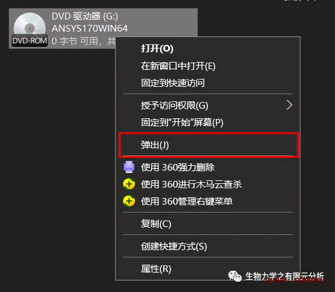 去到我的电脑,在G盘上右键,选择弹出,弹出DVD1