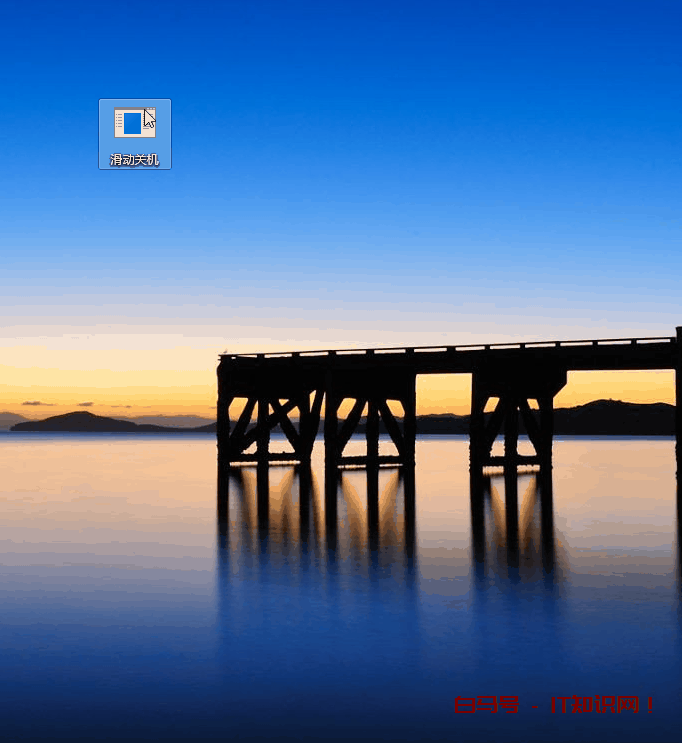 最后双击这个快捷方式就能滑动关机了,用鼠标左键把锁屏图片拉到底部即可关机。