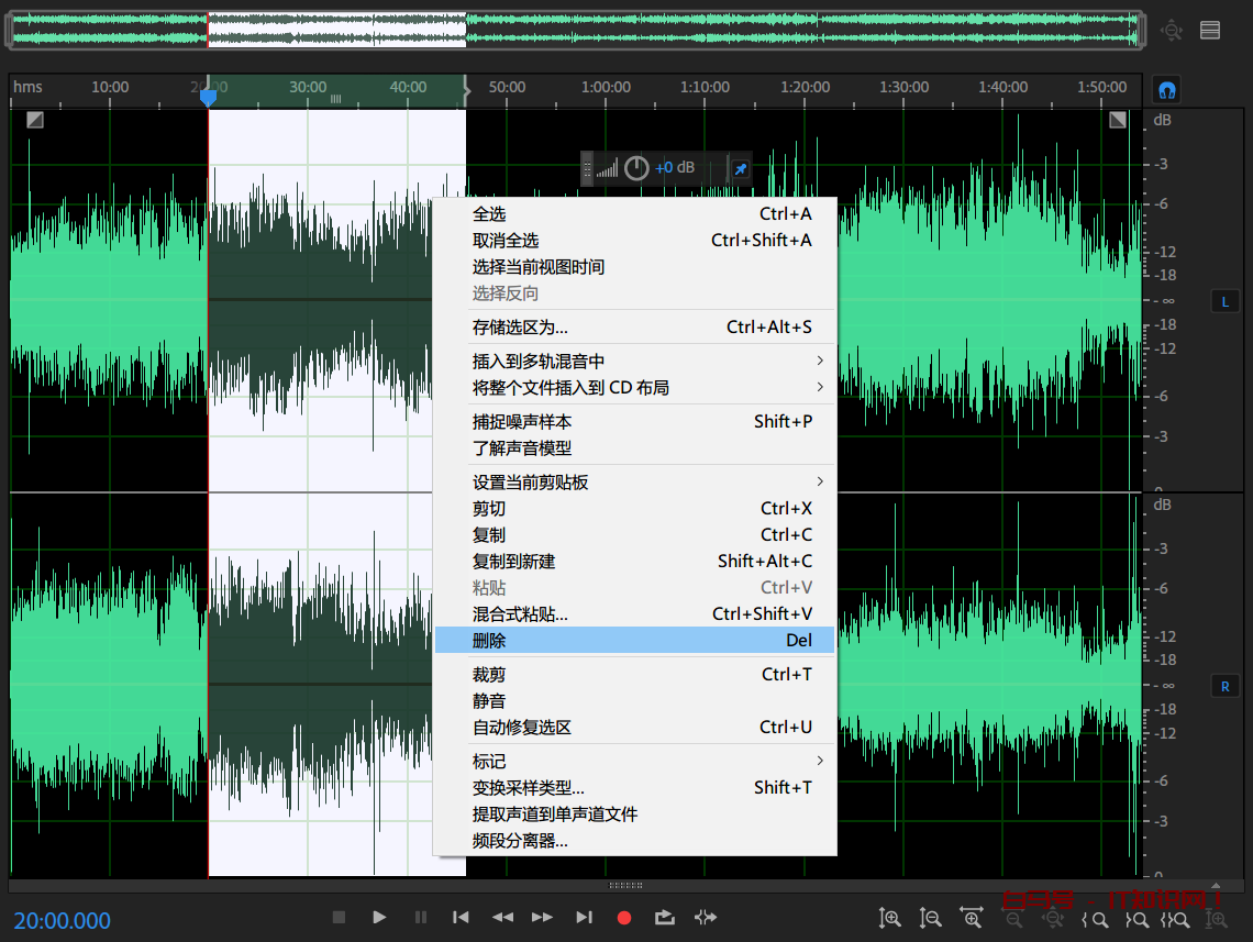 3.点击右键,选择删除。刚才选择的音频就被删除了