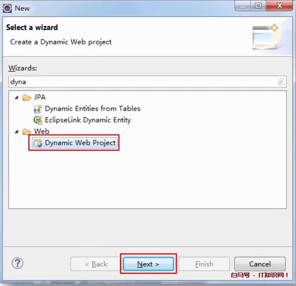 在Eclipse中要创建Web工程,其创建的类型为Dynamic Web Project。这是与MyEclipse不同的地方。