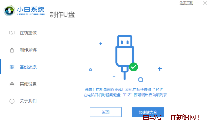 1.首先到小白系统官网下载安装小白一键重装系统软件打开,u盘插入电脑。关掉防病毒软件,点击界面左边的“制作系统”,点击下一个步骤开始。