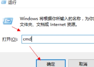 2、然后在如图所示输入框中输入“cmd”,点击确定