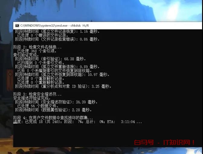 确认无误后回车,然后电脑就会对u盘进行一系列检测修复,直至修复完毕,期间不要运行其他程序。