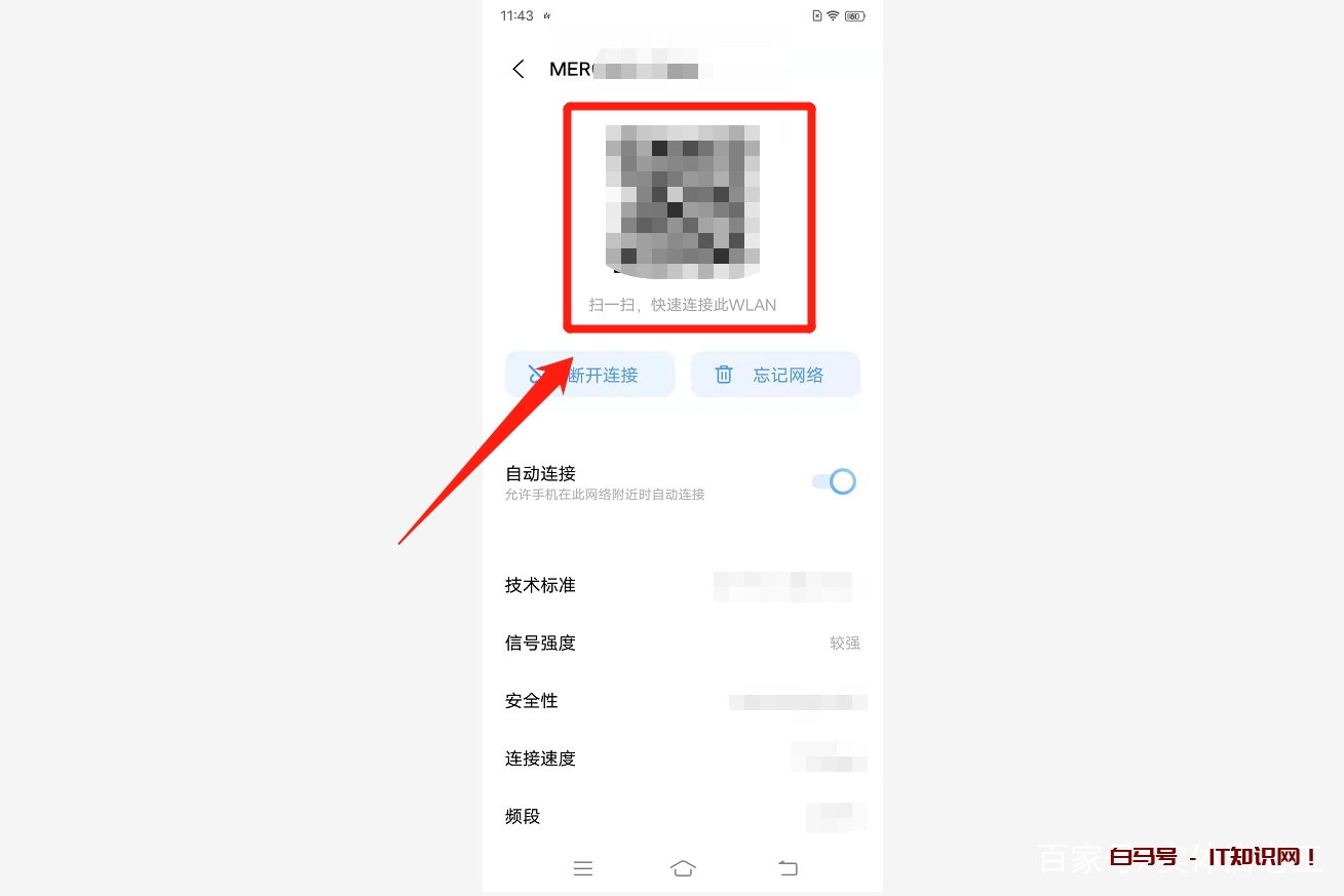因为手机品牌、型号、厂商的不同,生成WiFi二维码的方法、步骤也是不同的,这里就不多做介绍了。以IQOO Z3手机为例,生成二维码以后,将其截屏保存到手机内。如下图: