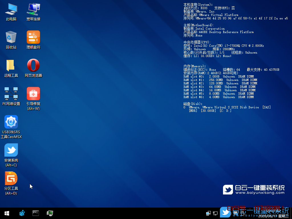 2、启动U盘:推荐使用白云一键重装工具(工具特点:1、支持PE下自动修复UEFI+GPT引导,2、支持LEGACY/UEFI双引导,3、一键装机自动注入nvme驱动)制作带有Win7系统(该系统通过驱动总裁,拥有最新的USB3.0/USB3.1驱动,解决安装六代CPU以上机型时USB无法使用问题,解决最新intel 八代、九代和十代(部分型号)CPU装Win7的问题,完美支持B360/B460/B365/Z390/Z490/H370等主板USB驱动以及UHD610/620/630/P630集显驱动)的启动U盘。也可以选择功能更齐全的U盘魔术师进行启动U盘制作,不过需另外下载系统。