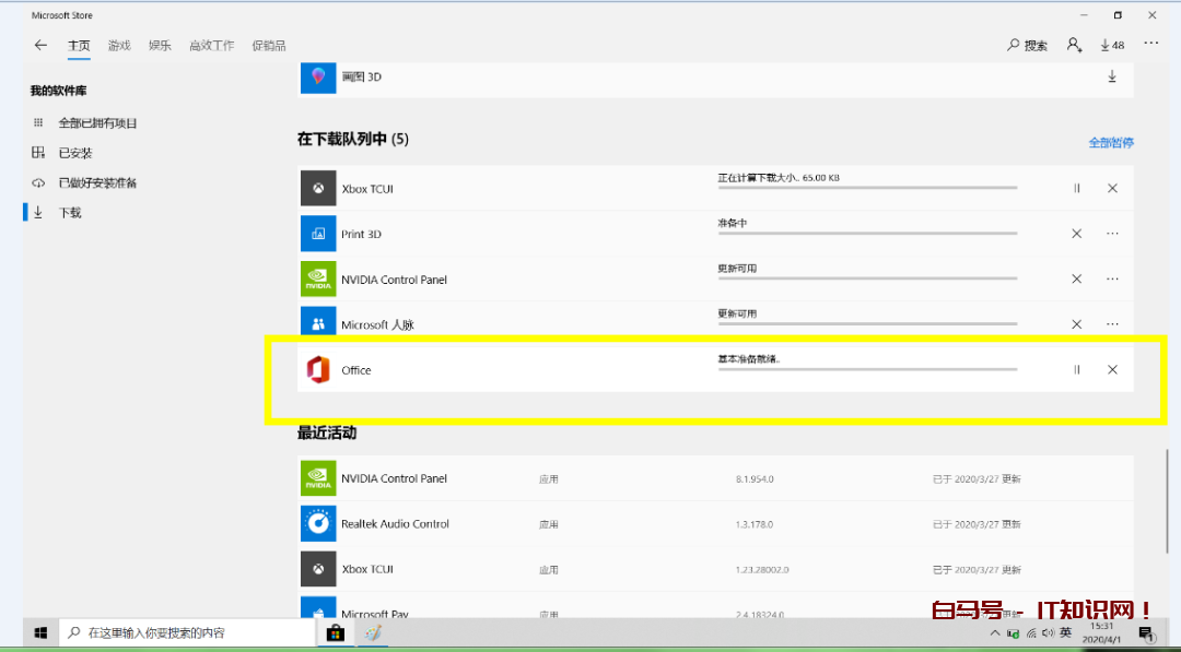 第二步、点左上角的 “…”,然后打开下载和更新。
